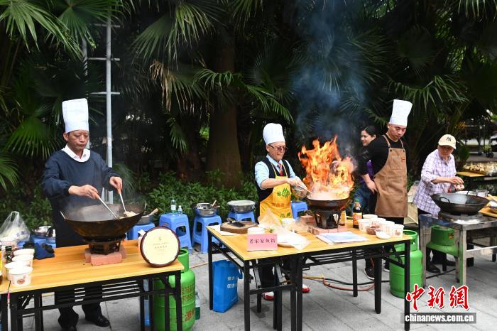 图为百家宴现场1个“4世共堂”家庭品味好食。旧鑫 摄
