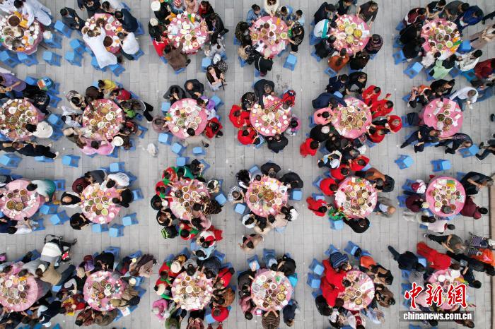 图为百家宴现场,住户围坐品味好食。旧鑫 摄